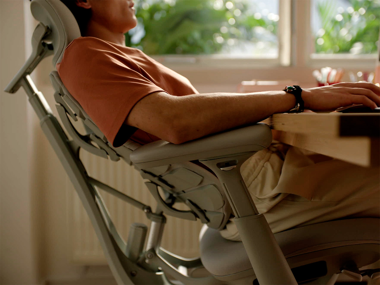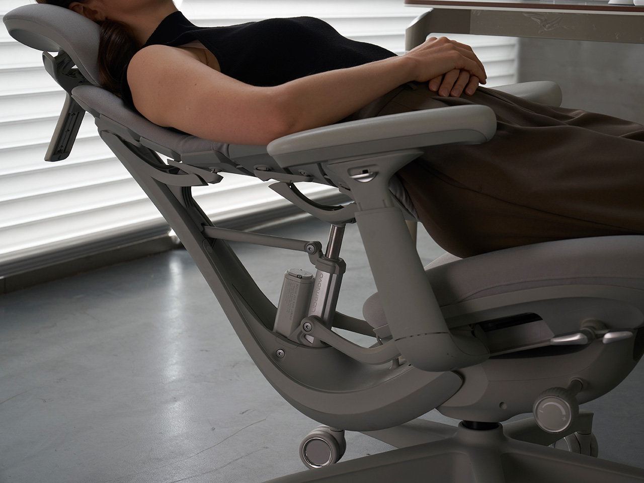 Beyond the dynamic backrest, every component of the Omni is designed to address specific comfort challenges. The 4D armrests adjust in height, width, depth, and angle, automatically repositioning during recline to maintain proper elbow support. The 3D neck support moves both vertically and horizontally, staying aligned with your head regardless of your sitting position.