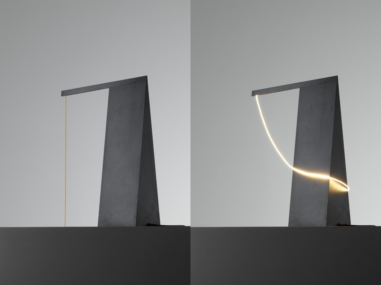 What makes the Tangent lamp by Ana Relvão and Gerhardt Kellermann particularly compelling is how it transforms the simple act of turning on a light into something far more engaging. This experimental piece from their RK Lab platform strips lighting down to three essential elements: a magnetic sphere, a block of oxidized steel, and a light filament that only illuminates when these components connect.