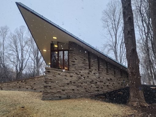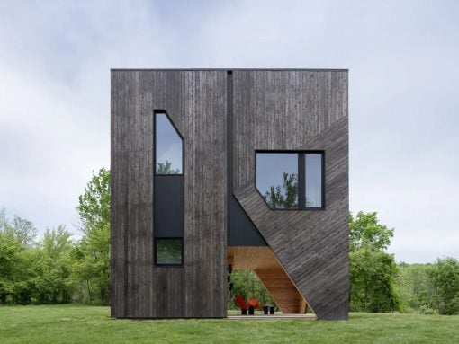 In the rolling hills of New York’s Hudson Valley, a striking cedar-clad cube emerges from the forest canopy like a modernist beacon. This is “House…