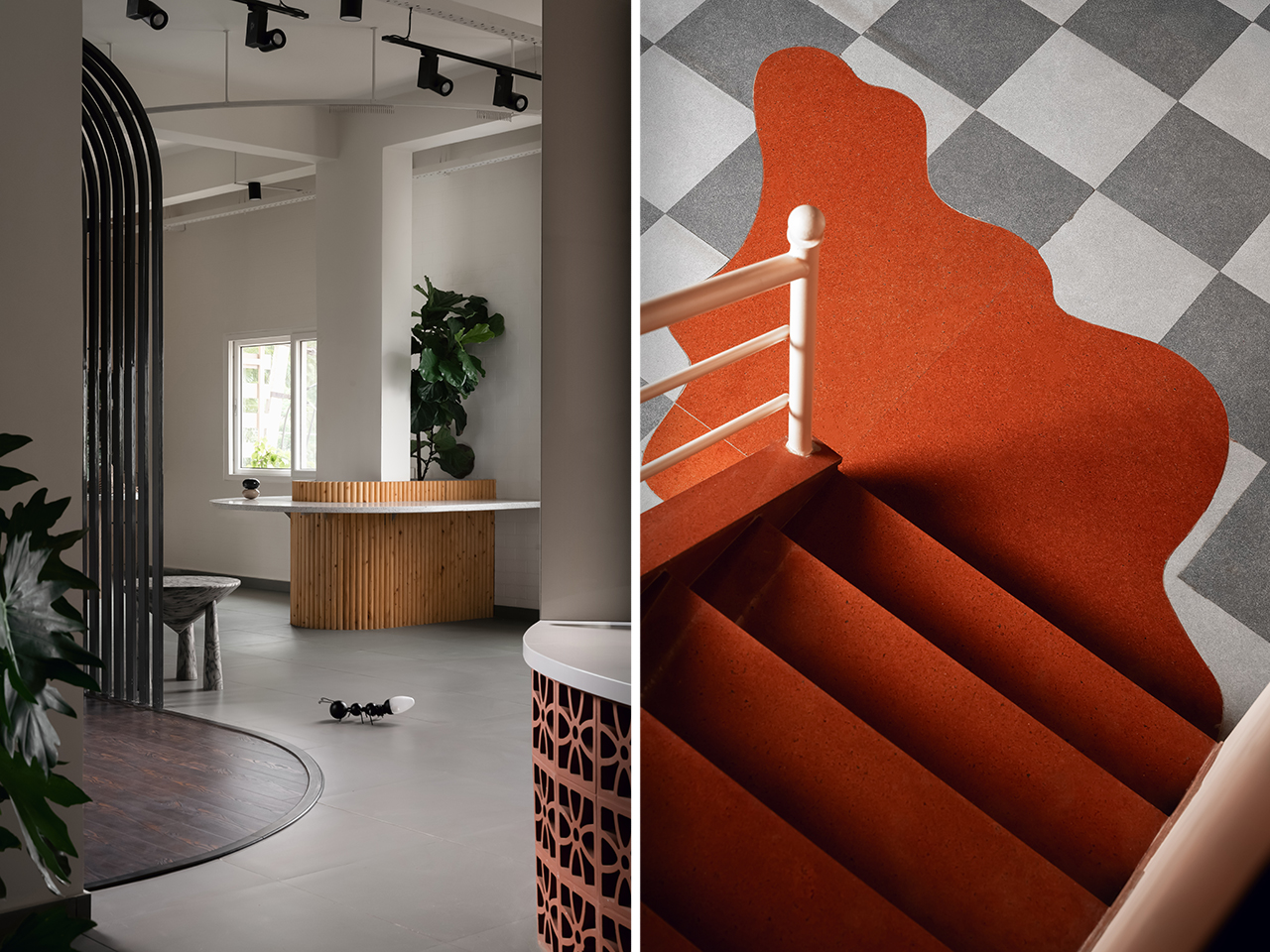 What ultimately makes this transformation so successful is Megha Dugar Jain’s unique approach to spatial division. Instead of erecting walls to separate functions, she’s used color, material, and thematic elements to create distinct zones that still feel connected to the whole. The active, human-centric areas burst with vibrant hues and dynamic forms, while display zones adopt a more restrained palette that puts the focus on the products themselves. This strategy creates a space that feels both cohesive and varied, allowing for different experiences within a single open environment. The transitions between zones feel natural rather than abrupt, guided by subtle shifts in flooring, lighting, and material. And while each area has its own character, recurring elements like the curved forms, organic patterns, and thoughtful material selections create a visual language that unifies the entire project. The space works because it balances structure with spontaneity, allowing for moments of surprise within an overall framework that makes sense. It’s like a well-composed piece of music, with themes that repeat and evolve throughout, creating something that feels both familiar and fresh with each encounter.