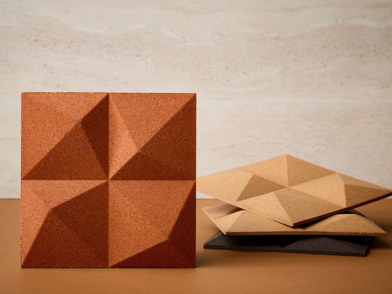 Organic Blocks is the bold centerpiece of the collection. This series features nine different Design Blocks, each with sculptural shapes and geometric patterns inspired by the forms found in nature. From clean, modern lines to beehive motifs, the versatility of the Organic Blocks makes it easy to create customized wall sculptures that turn any interior into a dynamic work of art. The range also includes Cork Strips, with eight variations of linear profiles, providing even more ways to personalize a space. Accessories such as cork pieces with natural moss or modular lighting can be added, giving designers and homeowners the freedom to enhance the visual and sensory experience of every room.