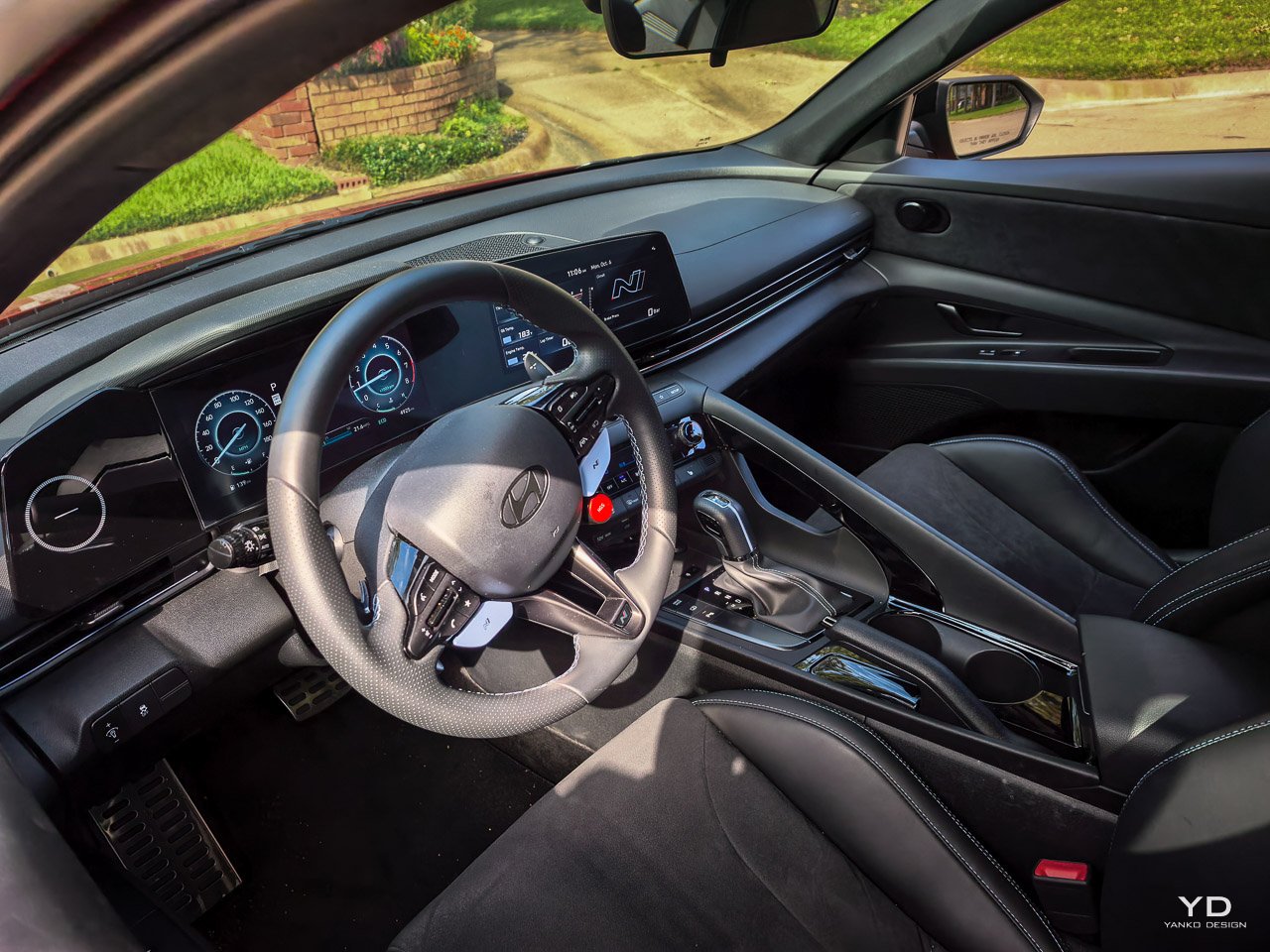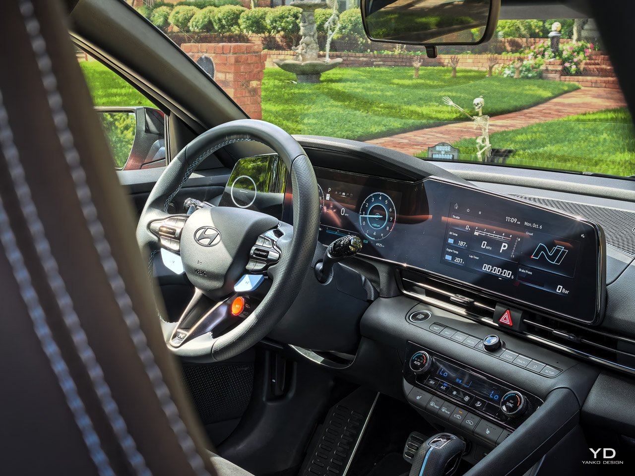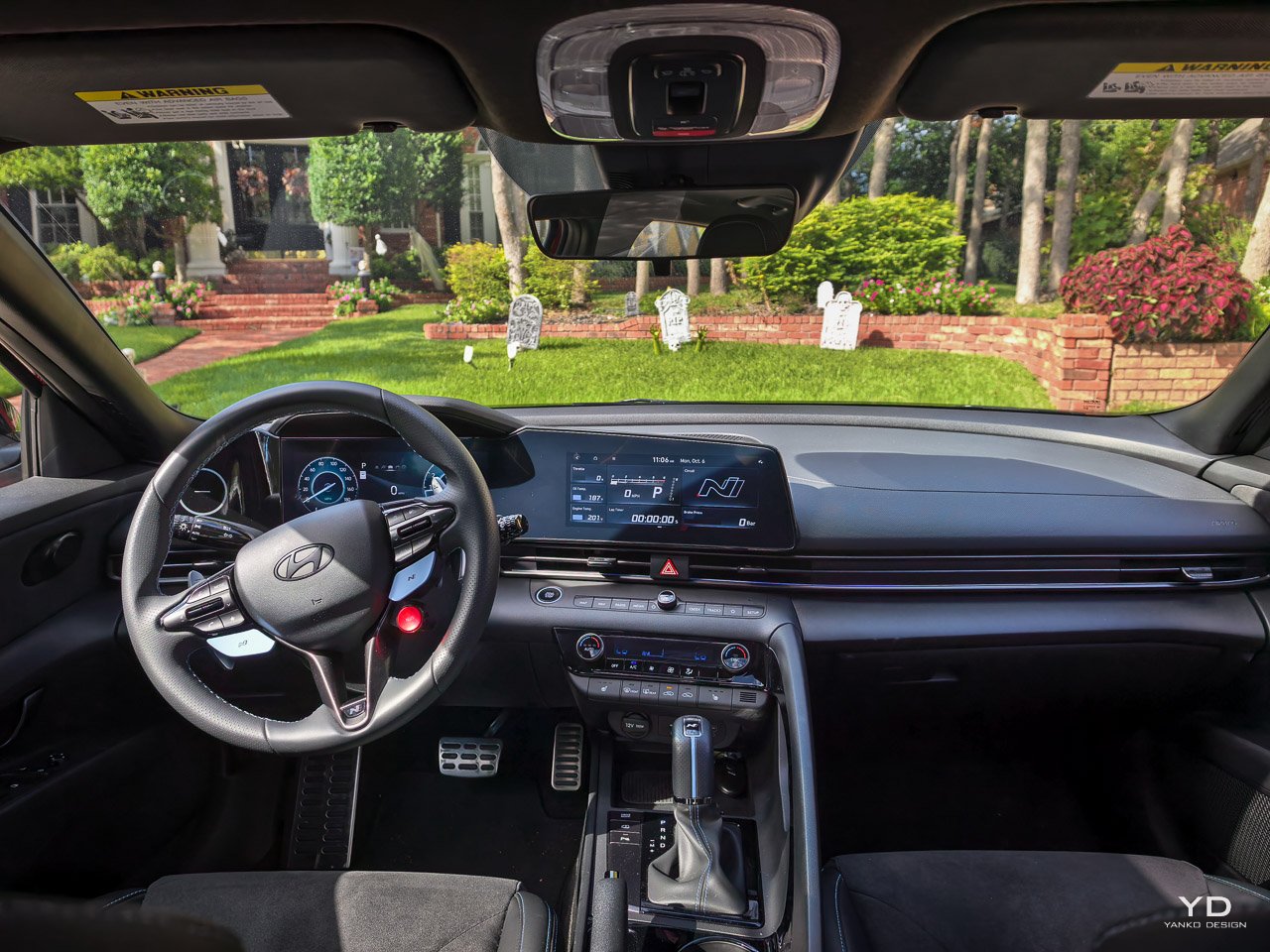 Hyundai’s “circuit sophistication” shows up everywhere: from the functional front intakes and aero management outside to the way your hands, eyes, and torso interface with the car inside. The Elantra N looks planted because it is, and the cockpit is arranged to help you drive it that way.