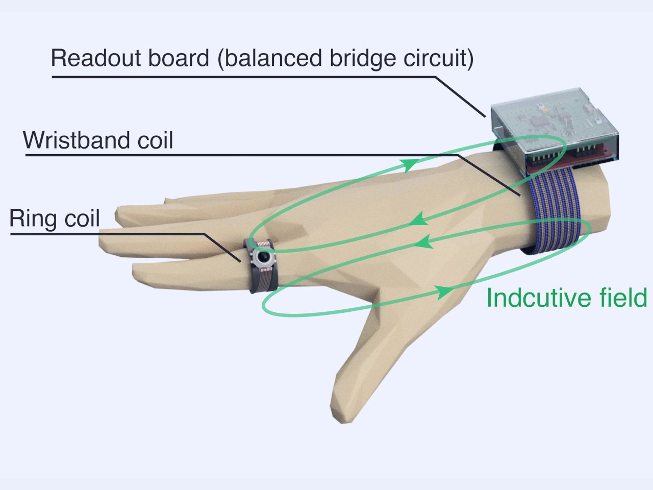 The core technology relies on inductive coupling between coils embedded in both the ring and wristband. When you move the trackball with your finger, the input gets encoded as frequency-modulated signals and transmitted wirelessly to the wristband with minimal power consumption. The wristband then decodes these frequency peaks back into mouse movements and sends them to your connected device.